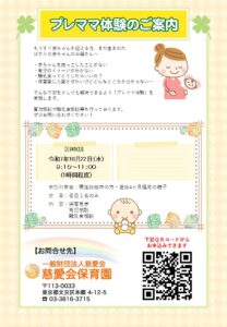 慈愛会保育園ではもうすぐ赤ちゃんを迎える方、